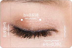 根据三庭五眼,定位眼部黄 金矩形,设计黄金比例眼皮 线,美观、自然。